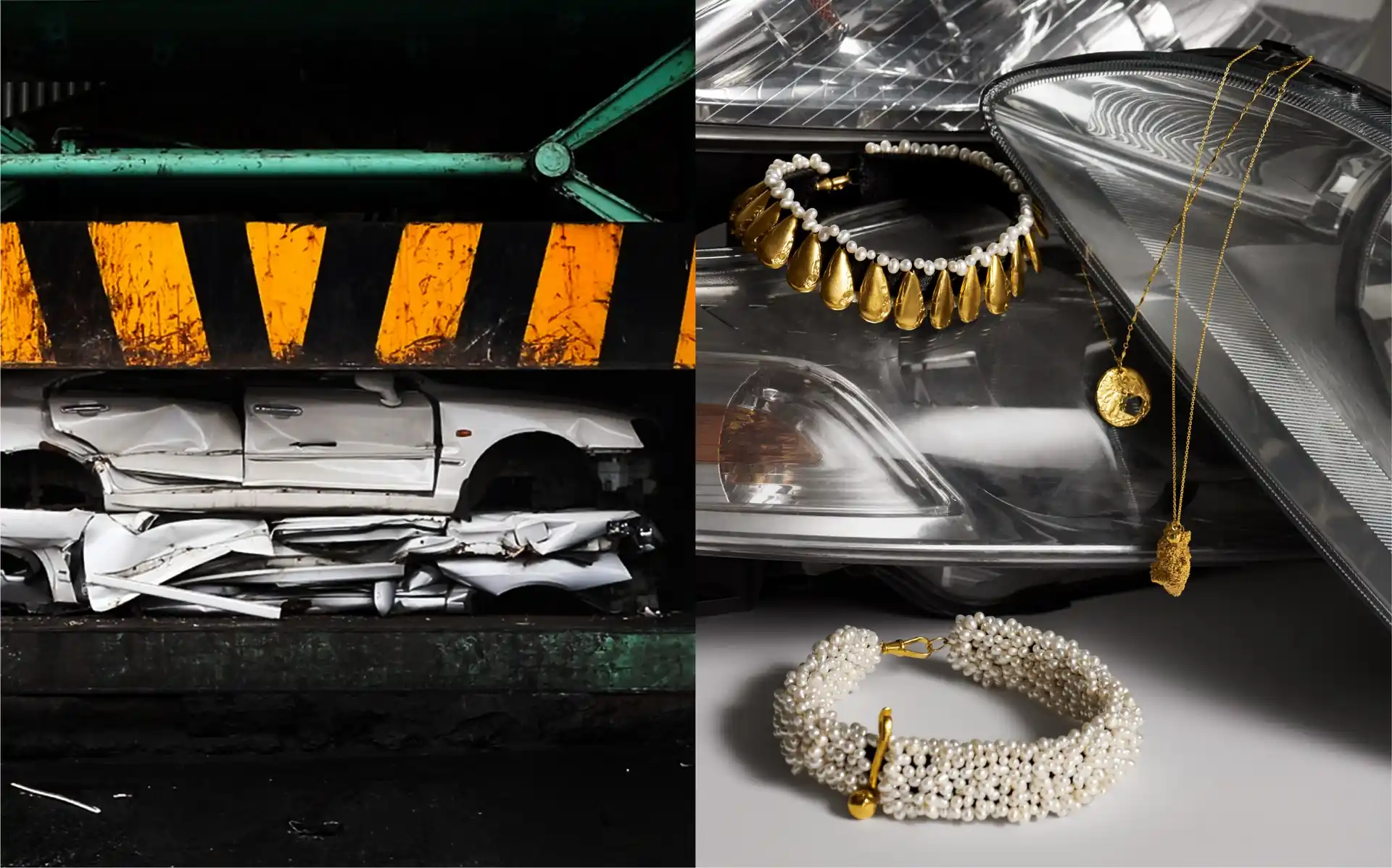 Например, компания Alighieri превратила остатки утилизированных автомобилей в стильные украшения – колье, серьги, браслеты и чокеры. Стилисты E.L.V. DENIM изготовили из обрывков кожи и остатков джинса, оставшегося после отделки салона авто, стильный комбинезон. Public School и pushBUTTON сделали жилеты из ткани от подушек безопасности, а дизайнер Ричард Куинн создал из этих же материалов модный корсет. Еще одна уникальная вещица получилась из ремней безопасности и ковровой ткани. Речь идет о большой сумке, над созданием которой трудилась Рози Ассулен.