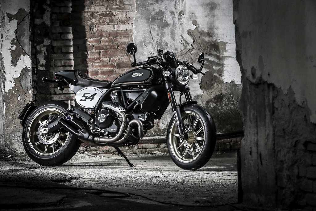 Первая – интерпретация легендарных байков 60-х, которые сделали революцию в мире мотоциклов, выражая собой свободный дух и стиль. Мотоцикл выполнен в специальном цвете «Black Coffee» и имеет отличительную эмблему с номером 54, который когда-то принадлежал Бруно Спаджари. В 1968 году успешный гонщик команды Ducati выиграл классическую гонку Mototemporada Romagnola.