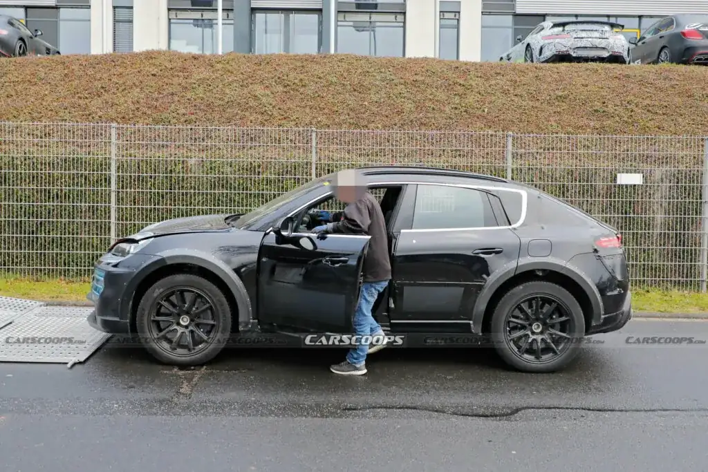 При этом у прототипа более широкие колесные арки, уникальный передний бампер с центральным блоком датчиков и массивные передние воздухозаборники. Также фотошпионы отметили, что у мула колеса больше и шире, чем у серийного Macan EV.