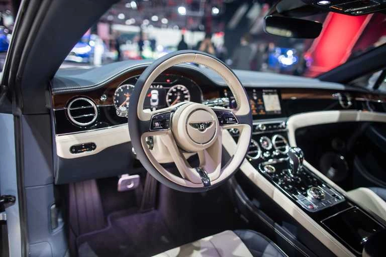 В салоне машины - кожа, дерево, алюминий, виртуальная приборка и большой экран мультимедиа. Сиденья Bentley Continental GT 2018 оборудованы электроприводом регулировок в 20 направлениях.