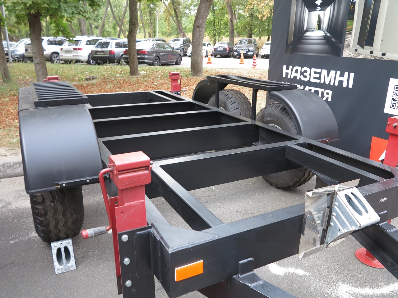 На выставке Security 2.0, которая проходила в Киеве 2 – 3 октября, помимо бронеавтомобилей и роботизированных комплексов для разминирования, также была представлена и прицепная техника. Так, компания «СД Индастри» показывало интересные разработки собственного производства – под торговой маркой SDI. Это двухосный прицеп для боевой работы 120-мм миномета – «Привид-1». Оборудованный мощными амортизаторами и пружинами в кузове он позволяет гасить до 80% силы отдачи, что не допускает отклонения ствола при выстреле.