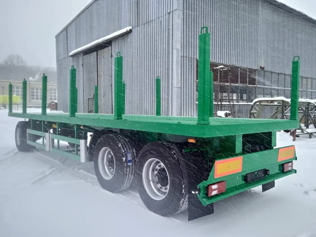 Из ворот завода на днях вышел первый такой продукт – модель ВАРЗ-ПТ 2809. На новинке имеется рабочая площадка длиной 8 м., по бокам которой установлены 12 стоек. Грузоподъемность составляет 28 тонн. Прицеп оборудован тремя осями турецкого производства – OSMAN KOC. Применяется тормозная система Knorr-Bremse с ABS.