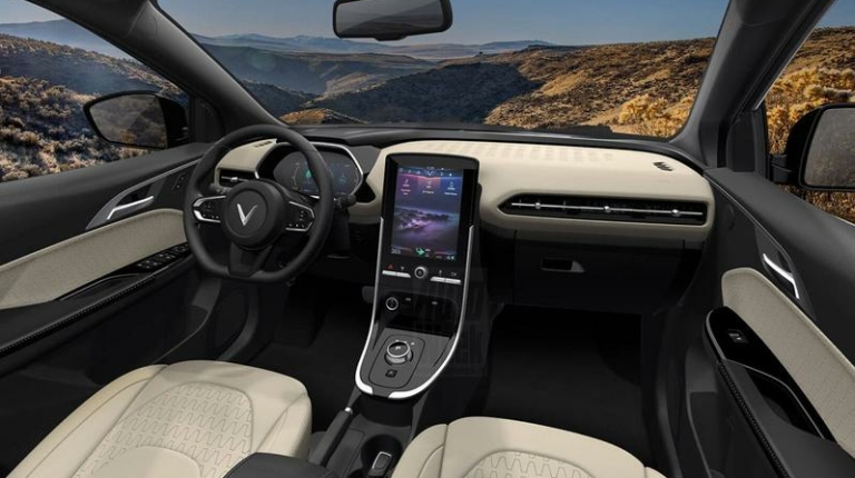 Новинка получила крупные светодиодные передние фары и ДХО в виде тонких полос, которые растянулись во всю ширину авто. Рельефные кузовные панели добавляют изысканности, а оформление кормы уже позволяет рассуждать о преемственности дизайна моделей вьетнамского бренда. Салон Vinfast VF e34 выглядит очень современно. В оснащение вошла цифровая приборная панель, мультимедийная система с вертикальным планшетом и поддержкой голосового управления. Пакет систем помощи водителю включает адаптивный круиз-контроль, мониторинг слепых зон, камеры кругового обзора и систему удержания в полосе.