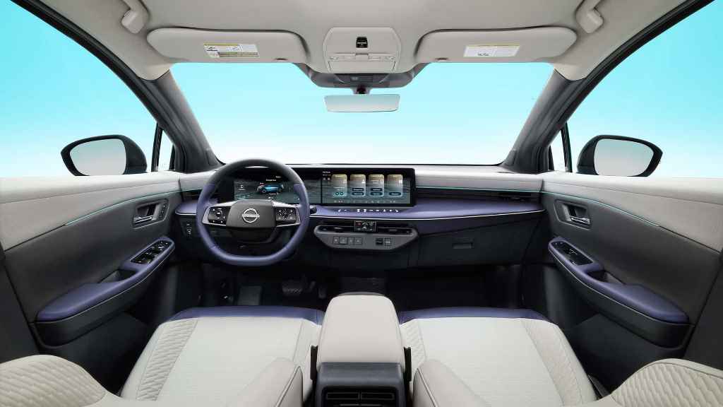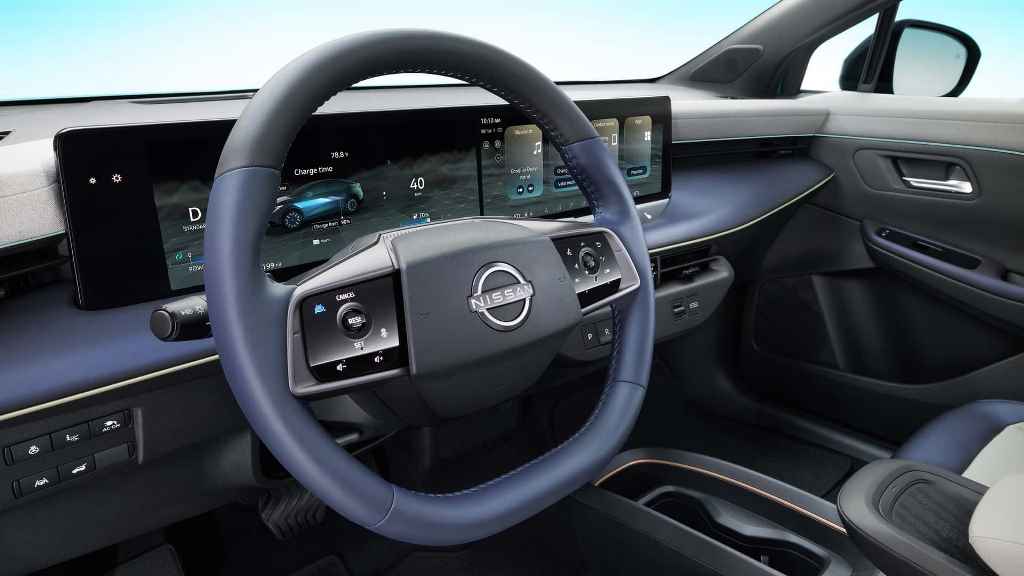 В оснащение кабины модели вошел огромный экран, который объединяет в себе 12,3-дюймовую цифровую приборную панель и мультимедийную систему с дисплеем аналогичного размера. В топовой комплектации Nissan Leaf поставляется с двумя 14,3-дюймовыми дисплеями с Google Built-In, которые также установлены под одним стеклом. Есть беспроводные Apple CarPlay и Android Auto, аудиосистема Bose с 10 динамиками и проекционный дисплей. Система ProPilot Assist от Nissan тоже является стандартной. Багажный отсек – 437 литра.