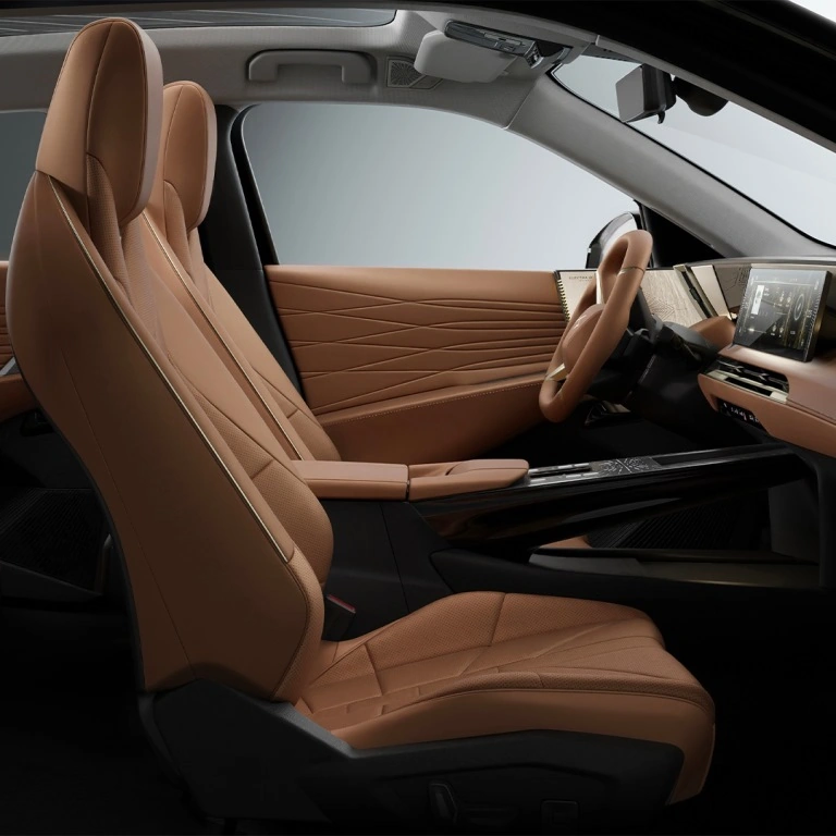 Новий DS N°8 пропонує чудовий вибір елегантних та вишуканих варіантів оздоблення салону, які пропонуються в залежності від певного виконання електромобіля – PALLAS або ETOILE. Фірмовим кольором салону для Нового DS N°8 виступає ніжний синій відтінок Eternal Blue, який гармонічно поєднує відчуття спокою та потужну приховану енергетику.