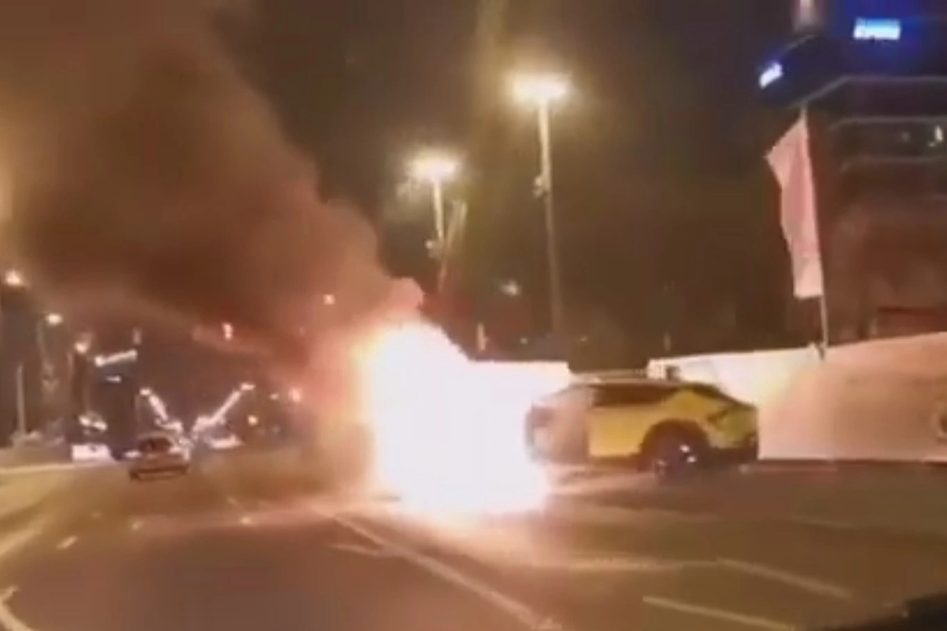 В социальных сетях начал распространяться ролик с горящим электрокроссовером Kia EV6. По некоторым данным, автомобиль вспыхнул после столкновения с бетонным отбойником на одной из улиц Будапешта. Официального заключения о причине возгорания на данный момент нет.