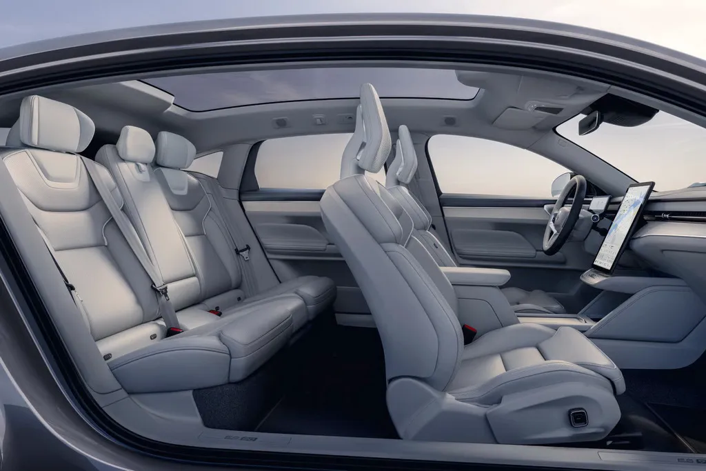 Салон ES90 втілює сучасну інтерпретацію скандинавського мінімалізму. Використано біологічно чистий матеріал Nordico, дерев’яний декор та текстиль зі 100 % переробленого поліестеру.