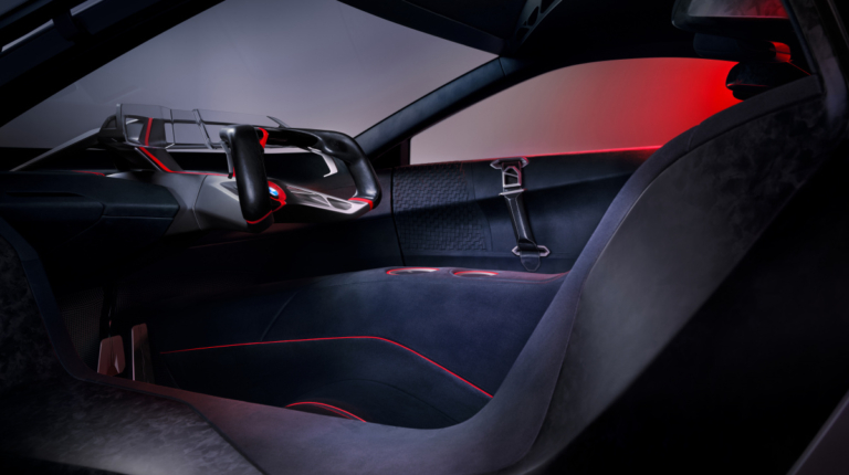 Кокпит BMW Vision M Next Concept более футуристичен. Здесь царит дух минимализма, а практически все управление сосредоточено на BOOST Pod – руле-штурвале и проекционных дисплеях за ним. Кресла умеют сами принимать форму человека, который в них садится. Интересно также, что самая главная информация проецируется перед водителем таким образом, чтобы всегда оставаться у него в поле зрения.