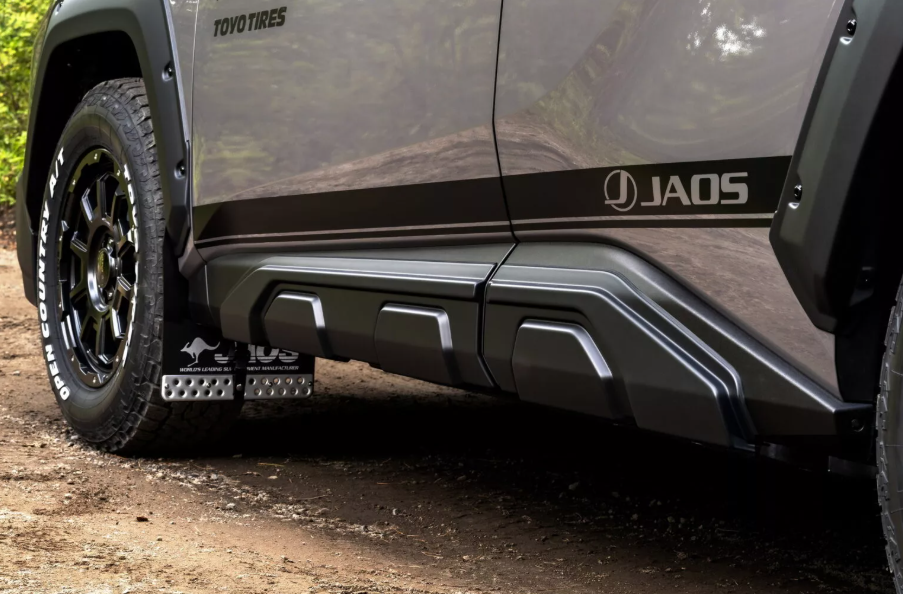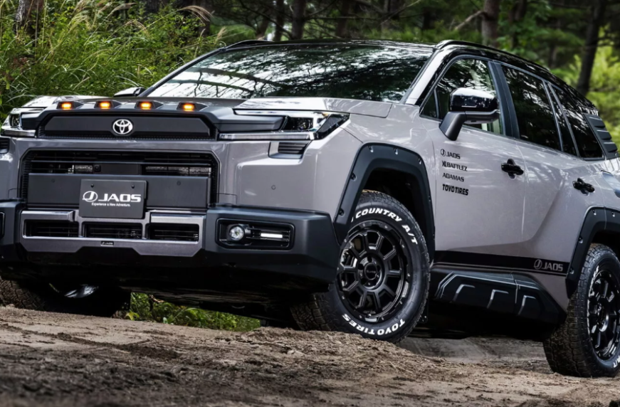 Не успела Toyota вывести на домашний рынок новое поколение кроссовера RAV4, как японское ателье Jaos выкатило для него эффектный тюнинг-кит. Он делает модель еще более брутальным, ориентированным на бездорожье.