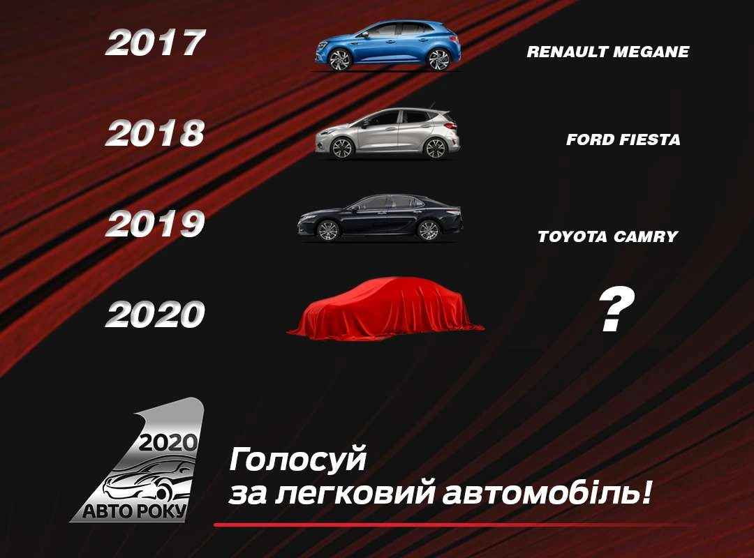 Уже котрий рік поспіль ми визначаємо найкраще легкове авто року, і 2020 не став виключенням. Навіть більше - за всі роки проведення акції Авто Року 2020 українці вже встигли сформувати свої національні смаки на автомобілі й новим поколінням стає все важче відповідати жорстким вимогам як покупців, так і просто автолюбителів. Тим не менше поміж цьогорічних конкурсантів зав'язалася серйозна боротьба, адже практично кожен з них має свою історію, яка є значущою для багатьох прихильників, та козирі, які часто проявляються в нових розробках, застосованих в машинах. Лише ви можете визначити, які з них мають для вас реальне значення!
