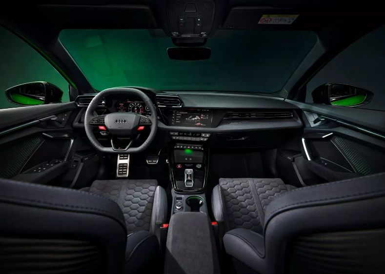 В движение обновленный RS3 приводит 2,5-литровый турбированный пятицилиндровый мотор мощностью 400 л.с. и 500 Нм крутящего момента. Он позволяет авто разгоняться с места до «сотни» за 3,8 секунды и развивать максимальную скорость в 290 км/ч. Однако секрет улучшенной производительности модели 2025 года заключается не в двигателе. А в управлении. Audi улучшила делитель крутящего момента автомобиля и теперь на заднюю ось передается больше тяги.