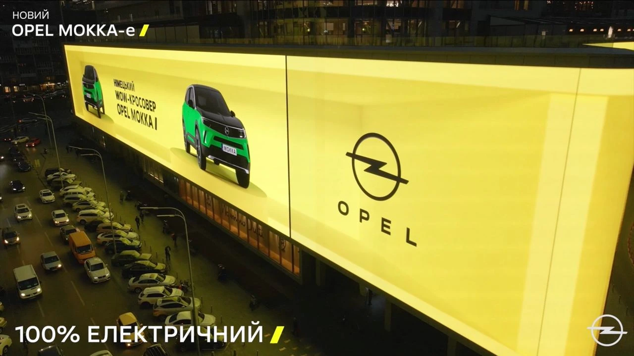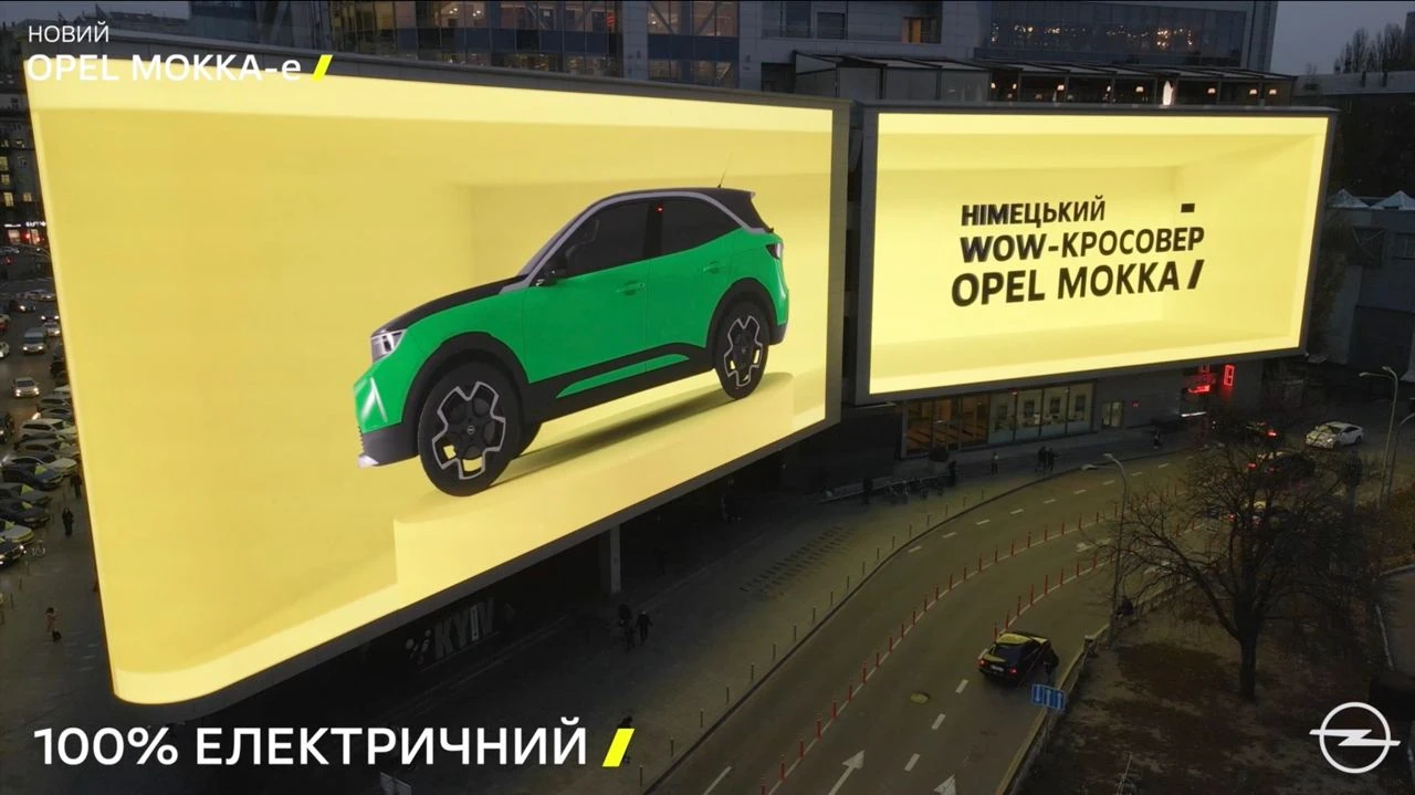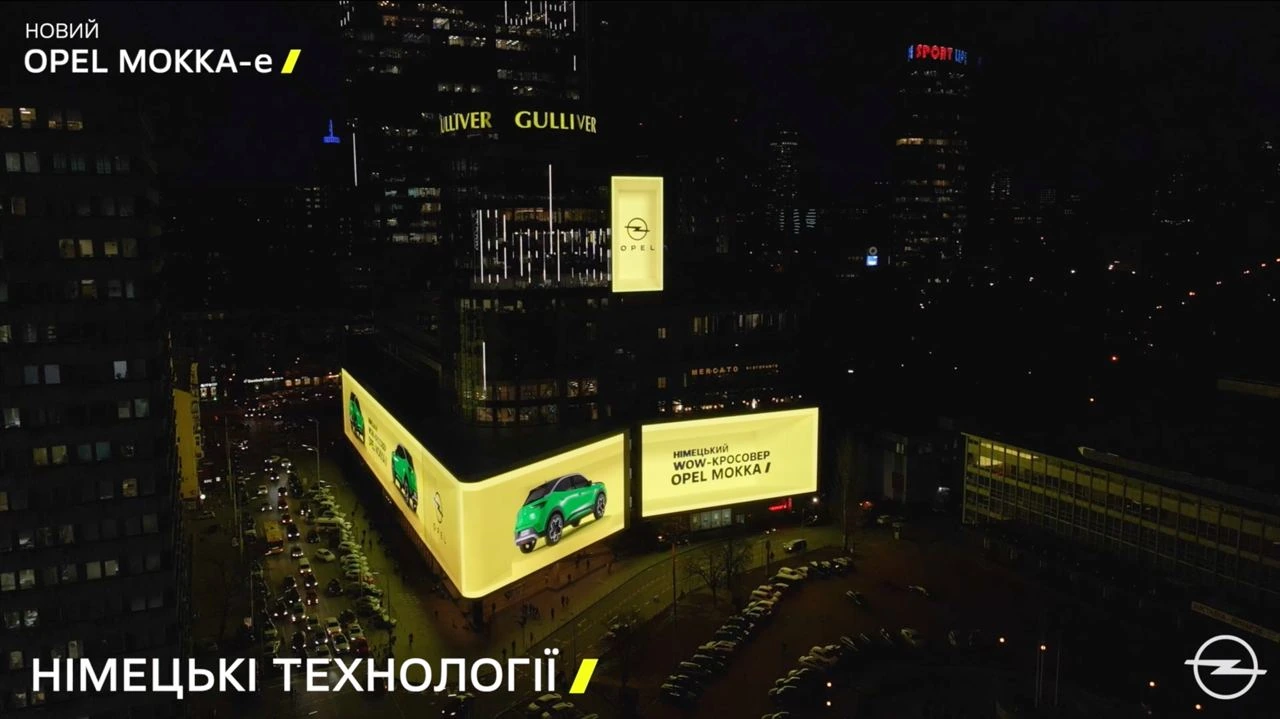 “Выбирая рекламную плоскость и формат презентации, мы руководствовались желанием показать авто до малейших деталей. Оригинальный дизайн передней части авто, развитые колесные арки, динамичный скос крыши – все, что выделяет и влюбляет в Opel Mokka-е ценителей современного дизайна», - отметил маркетинг директор Stellantis в Украине Андрей Чабанов.