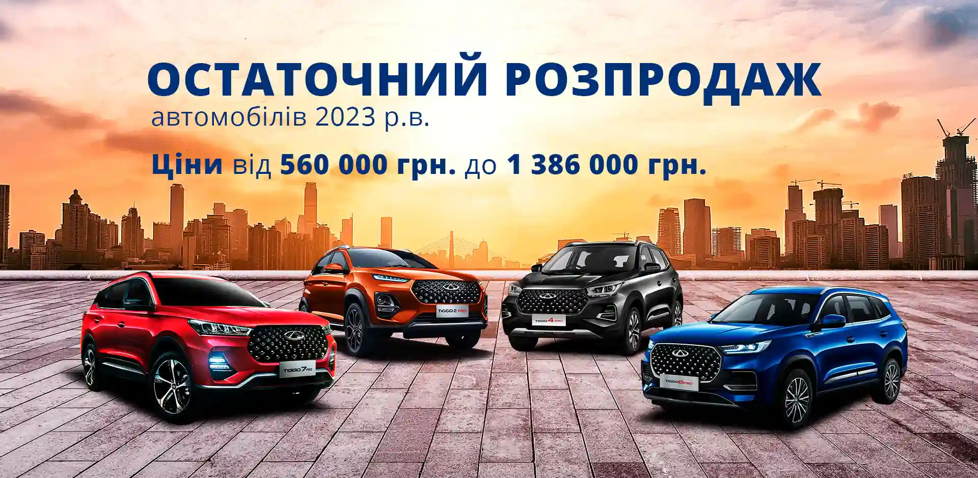 Остаточний розпродаж автомобілів CHERY 2023 року виробництва у офіційних дилерів по всій Україні за спеціальними роздрібними цінами.