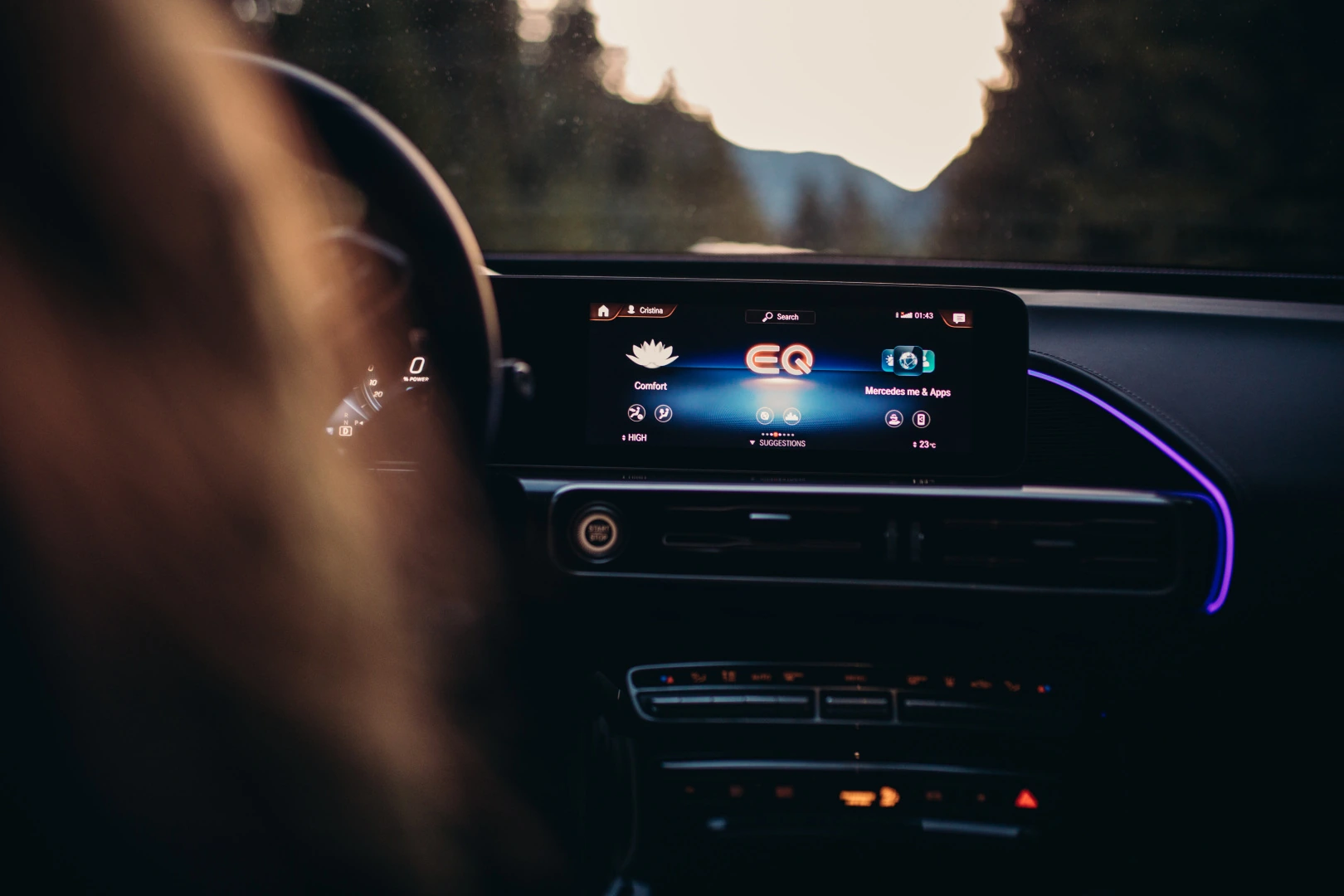 Дисплей системы MBUX содержит специальную «плитку» EQ, на которой собрано множество функциональных возможностей EQ. Или пользователь может также непосредственно попасть в меню EQ системы MBUX, нажав клавишу на нижней левой панели управления. Также, традиционно для MBUX, доступное голосовое управление, специально адаптированное для версии EQ, что облегчает управление автомобилем EQC.