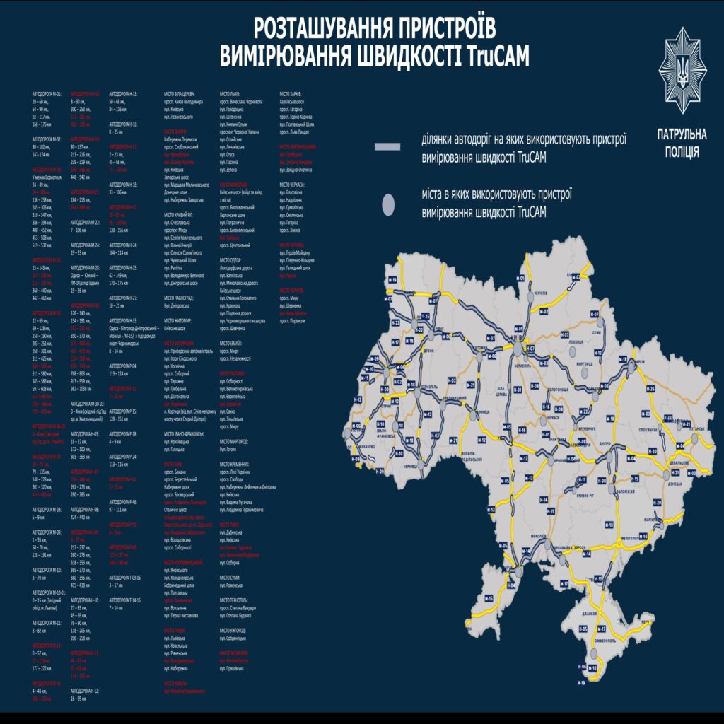 Под контроль TruCAM возьмут еще 28 участков дорог в Украине – адреса размещения