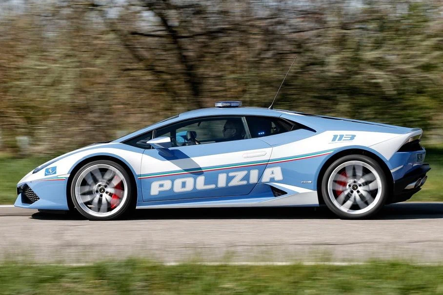 Купе Lamborghini Huracan для полиции не просто отличается ливреей, автомобиль оборудован специальным багажником-холодильником и дефибриллятором. Среди отличий от привычного Huracan – спецсигналы синего цвета, расположенные спереди, сзади, и по бокам кузова. Также стоит отметить комплекс фото- и видеофиксации нарушений, который итальянская полиция успешно использует.