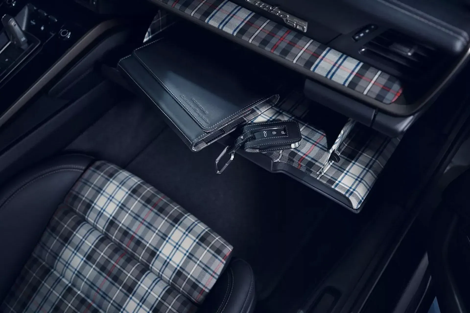 Хотя тартан традиционно ассоциируется с Шотландией, в компании Porsche решили его использовать для отделки салона. По словам представителей Porsche, вдохновением послужили брюки “в клетку” главного дизайнера Анатоля Лапина. Обычная ткань для одежды была недостаточно прочной для использования в качестве отделочного материала, но стилист Доротея Мюллер-Гудвин нашла немецкого поставщика с подходящими тканями, которые отвечали необходимым требованиям.