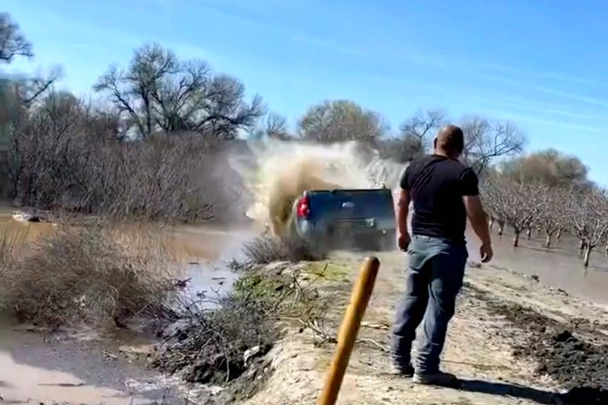 Местные фермеры не растерялись и наши способ быстро залатать прорехи в дамбах. Они наполнили землей свои пикапы и сбросили их в воду. Судя по видео, опубликованному на странице в Твиттер Майкла Кэннона, изначально в образовавшуюся яму сбросили Ford F-150, а затем туда же отправили синий Chevrolet Silverado.