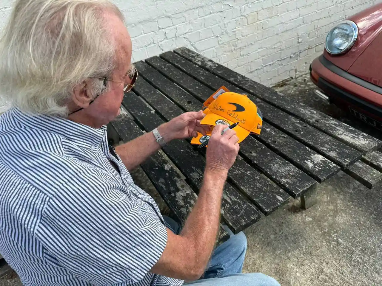 ▪️Три кепки McLaren та фотокартки, підписані екс-менеджером команди Аластером Колдвелом, з яким було виграно титули 1974 (Фіттіпальді) та 1976 (Хант) років.