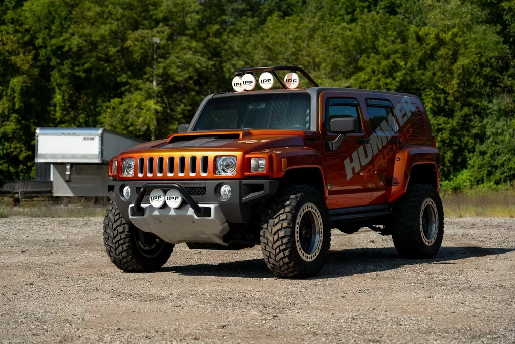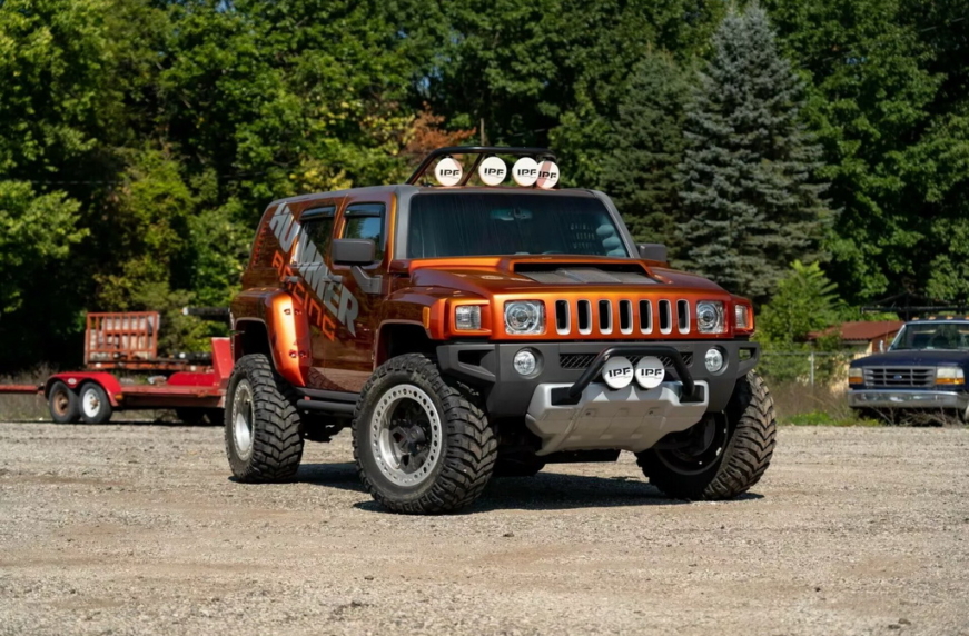 В США выставили на продажу уникальный концепт Hummer H3R с 512-сильным V8 лифтованной подвеской и огромными 25-дюймовыми шинами. Автомобиль будет продан на специализированном аукционе Mecum Indy Fall Special 5 октября.