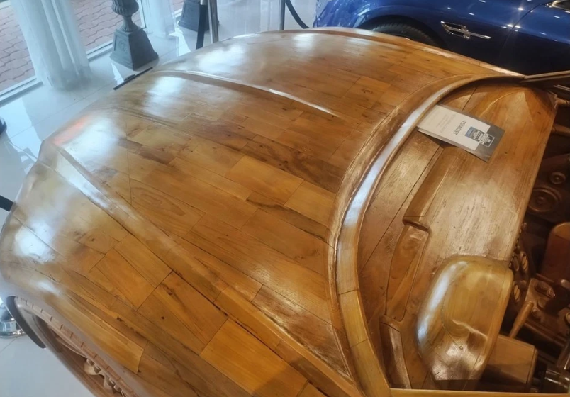 В настоящее время деревянная модель находится в выставочном зале Autosport Group (Флорид, США) рядом с настоящими Bentley. Сходство поражает. Известно, что уникальная работа родом из Бельгии, но имя автора не раскрывается. Машина выполнена из морского тика и фанеры, в качестве каркаса выступают деревянные балки, на которые и крепятся все детали. Отличается она детальной проработкой экстерьера и интерьера.