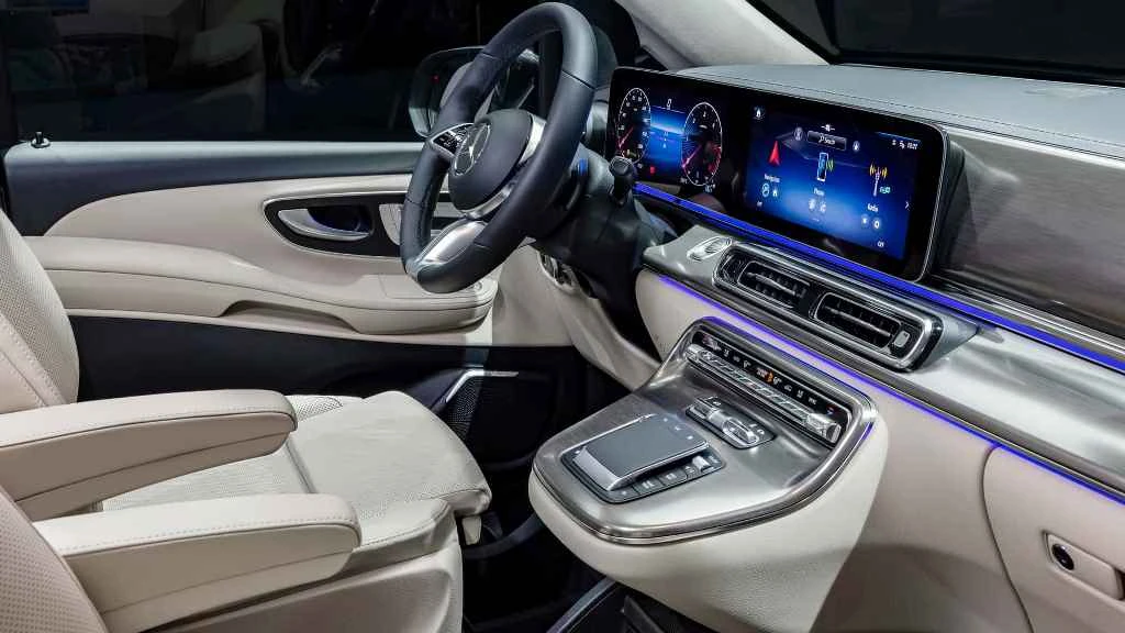 Изменения в интерьере более радикальные, чем в экстерьере. В салоне все минивэны оснащены новейшей информационно-развлекательной системой MBUX. Vito и eVito получили 5,5-дюймовую цифровую панель приборов и 10,25-дюймовый сенсорный экран. V-Class, V-Class Marco Polo и EQV могут похвастаться парой 12,3-дюймовых дисплеев.