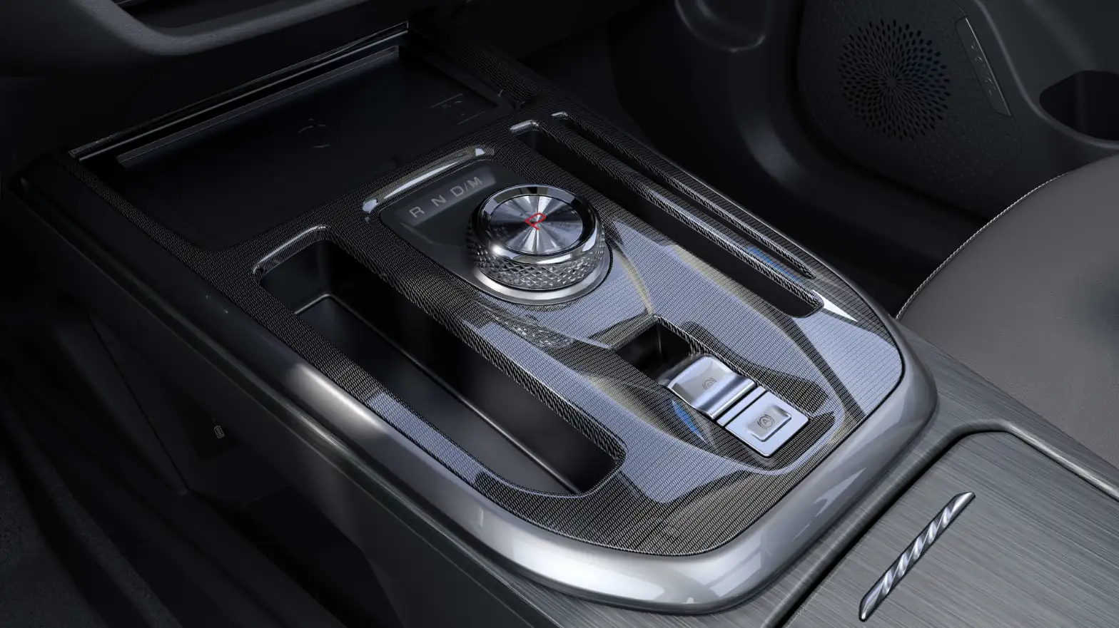 Ультрасовременный модуль переключения передач с глянцевым покрытием выглядит очень стильно и добавляет нотку роскоши салону автомобиля. Перед рычагом переключения передач находится платформа для беспроводной подзарядки телефона, которая подчеркивает современность и ориентацию на будущее.