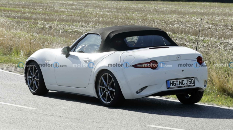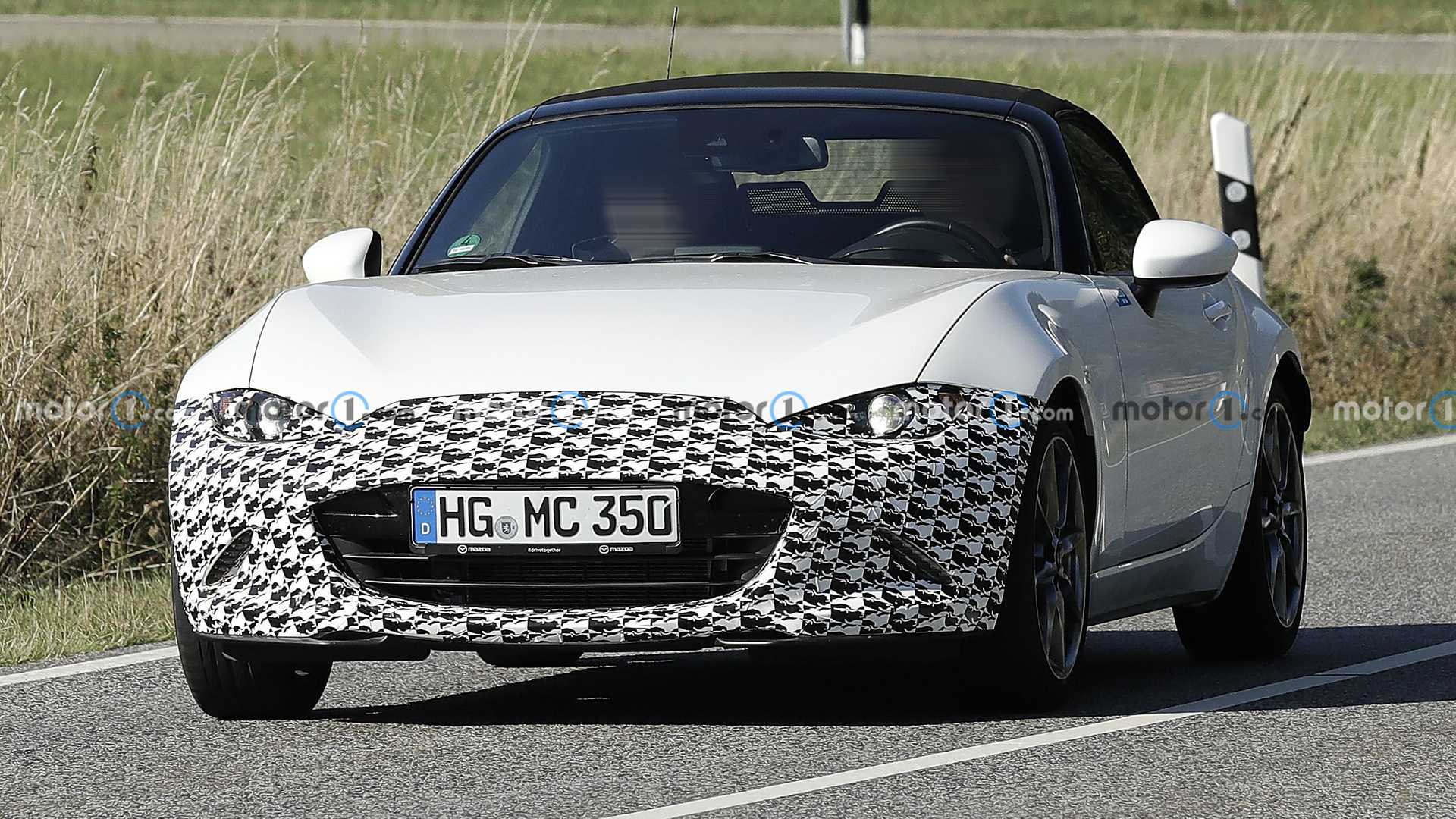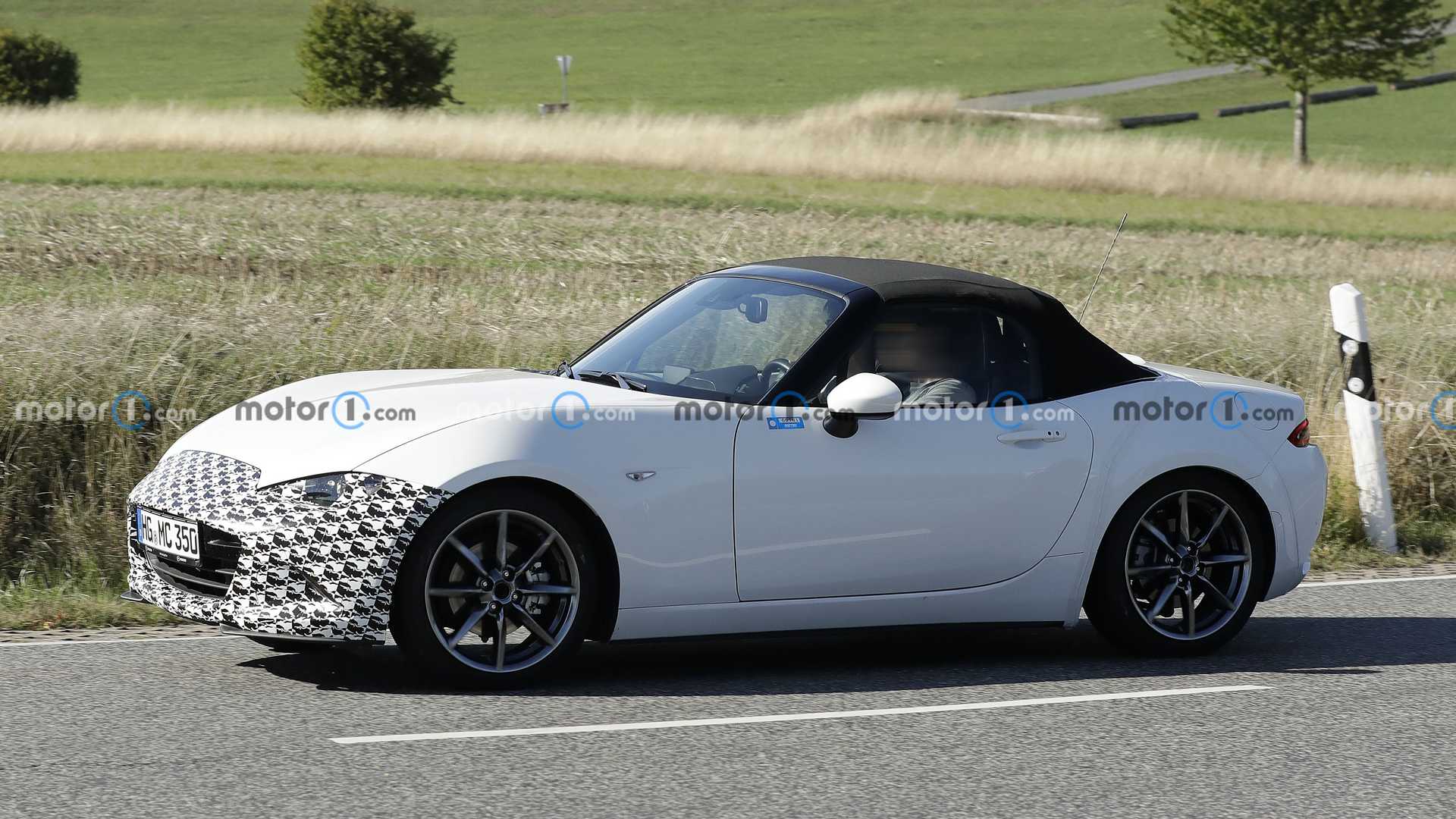 На боковой части автомобиля перед задними колесами видна приклеенная скотчем проводка. Возможно, следующее поколение MX-5 Miata получит технологию мягкого гибрида, чтобы вписаться в строгие нормы по выбросам СО2. Ожидается, что представят новинку в конце 2023 года, а на рынок модель выйдет на раньше 2024-го.
