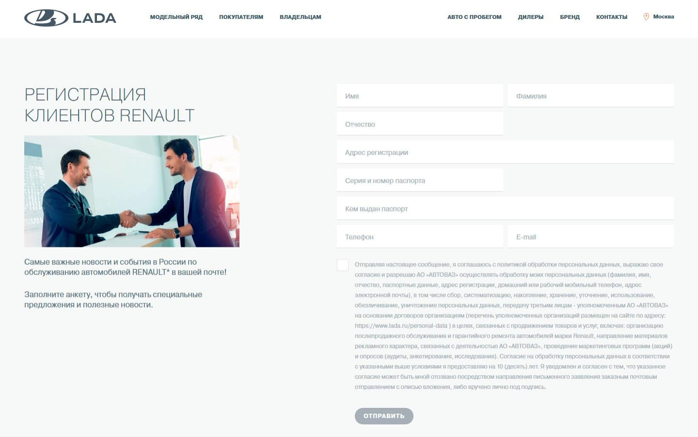 1 августа принесло россиянам новый сюрприз — официальный сайт Renault им больше не доступен. При попытке зайти пользователей автоматически перенаправляют на сайт российской Lada. Так клиентам Renault предлагают пройти регистрацию для дальнейшего обслуживания.