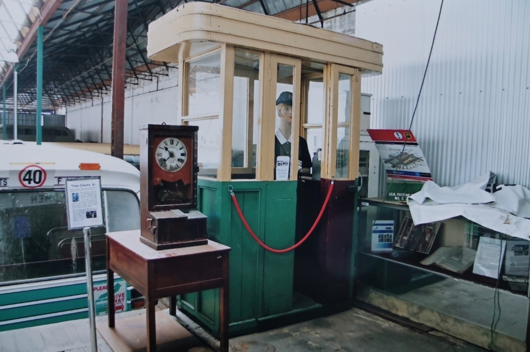 Кроме того, здесь представлены различные вещи, связанные с эксплуатацией автобусов, – от проездных билетов разных годов выпуска до формы кондукторов. Интересный экспонат – проходная автопарка 60-х гг., оборудованная устройством Time Clock, которое отбивает на личной карточке точное время прихода и ухода с работы.
