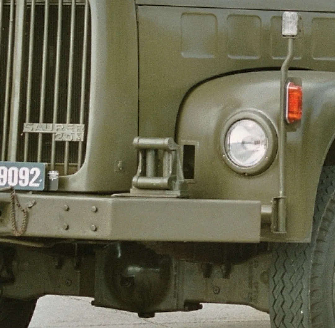 Это редкий полноприводный капотый грузовик швейцарской марки Saurer, модель 2DМ – один из наиболее знаменитых автомобилей, произведенных когда-либо этой фирмой. Его производство началось в 1964 году. Полная масса грузовика составляла 12 т, грузоподъемность на бездорожье – 4,9 т. Однако по дорогам с твердым покрытием он мог перевозить куда больше – по некоторым данным до 9 т. Вполне уверенно он работал и в составе автопоезда полной массой 21 т.