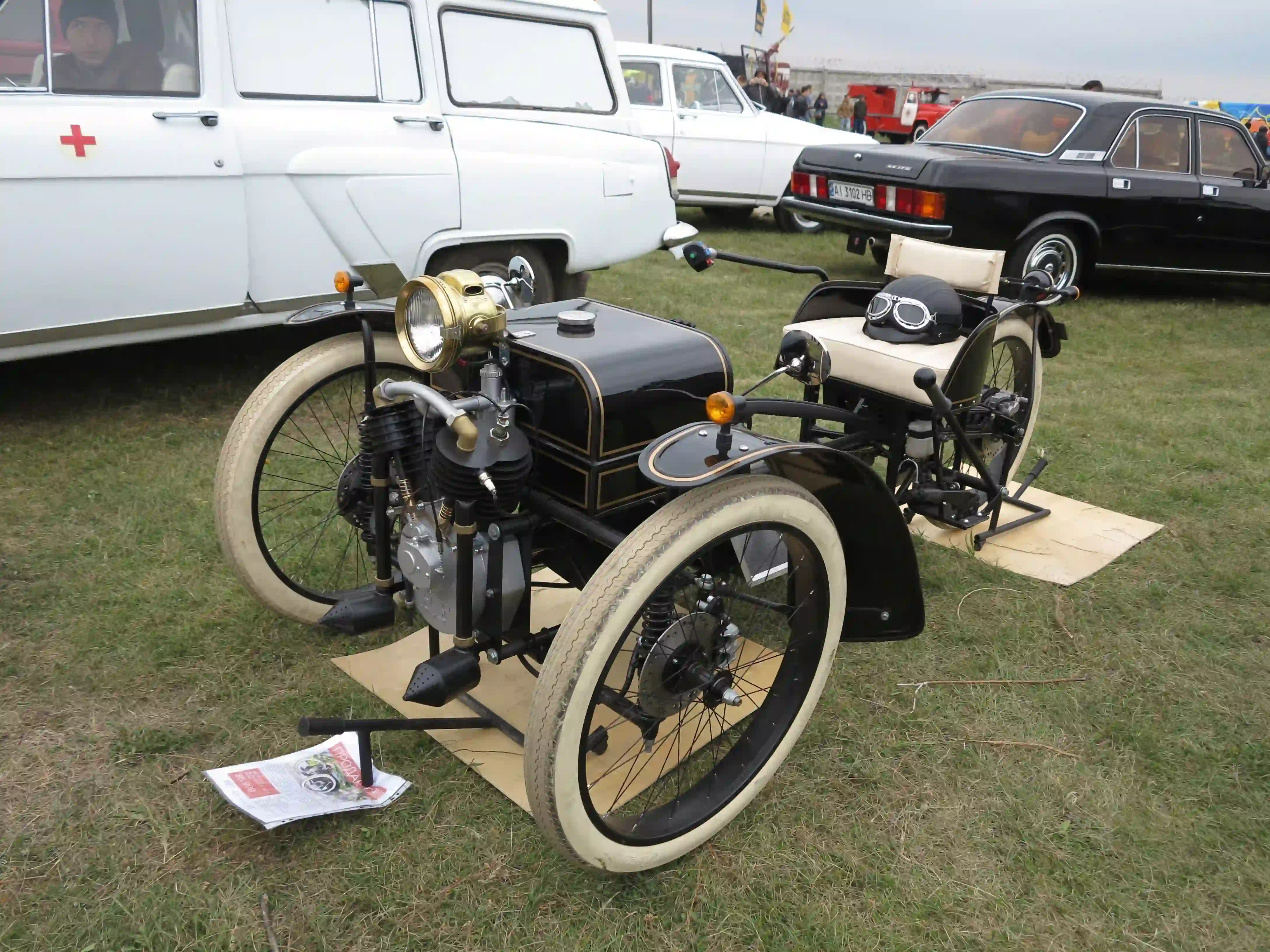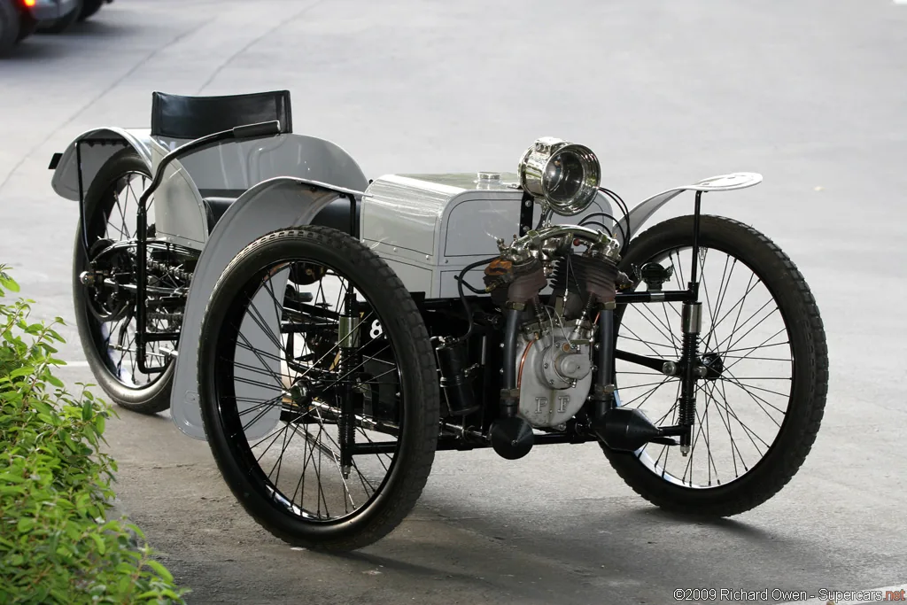Это были небольшие трехколесные машины типа runabout, рассчитанные на двоих. На трубчатой раме монтировался открытый двухместный кузов. Спереди было установлено два управляемых колеса, а сзади – одно, ведущее. Такая схема обеспечивала лучшую устойчивость по сравнению с трехколесными конструкциями, где спереди имелось лишь одно колесо, а сзади – два.