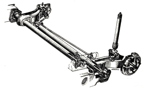 Еще одна интересная особенность модели: колесная база с левой стороны и с правой различалась на 70 мм. Дело в том, что в конструкции подвески колес с продольными рычагами упругими элементами служили поперечные торсионы. Так вот, из-за того что последние были расположены друг за другом, и возникла разница в размере колесной базы: слева – 2650 мм, а справа – 2720 мм.