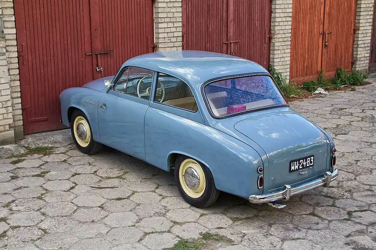Интересно, что на Syrena с целью рационализации производства предполагалось использовать до 50% компонентов от выпускаемых заводом FSO машин среднего класса Warszawa. А вот двигатель, понятно, был куда проще: двухцилиндровый двухтактный S15 c возвратно-петлевой продувкой. При рабочем объеме 746 см куб. он развивал 27 л. с. Охлаждение его было жидкостным, термосифонным, то есть без водяного насоса. Трубчатый радиатор располагался позади мотора, подача топлива осуществлялась самотеком. Рычаг 4-ступенчатой коробки передач располагался на рулевой колонке.