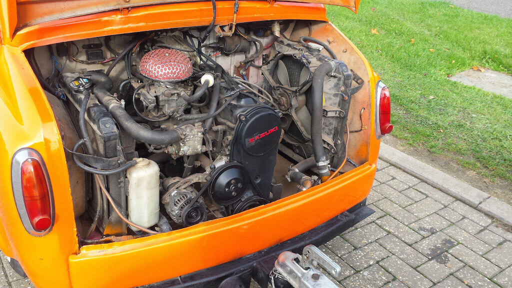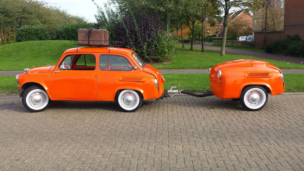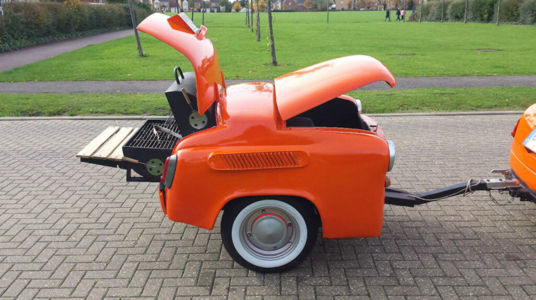 Как можно увидеть на фото, владелец превратил свой горбатый Запорожец в стильный компакт для путешествий. На крыше машины установлен багажник с раритетными чемоданами, а к фаркопу прикреплен стилизованный под сам автомобиль прицеп с грилем для барбекю.