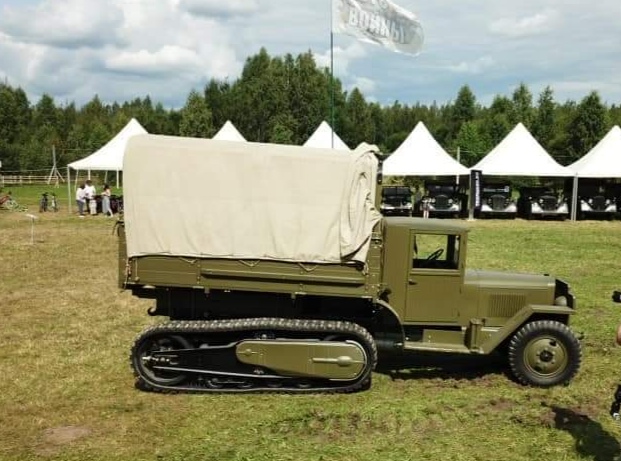 Полугусеничный грузовик-тягач ЗИС-42. Грузоподъемность – 2,25 т. Полная масса прицепа – 2,75 т. Двигатель ЗИС-5: 6-цил., 5,55 л, 73 л. с. На некоторых машинах стоял ЗИС-16 (80 л.с.). Гусеничная лента – резино-металлическая, со стальными плицами и наружными резиновыми башмаками. Передние неведущие колеса зимой ставили на лыжи. Максимальная скорость – 80 км/ч. В 1942-43 гг. выпущено 2867 машин.