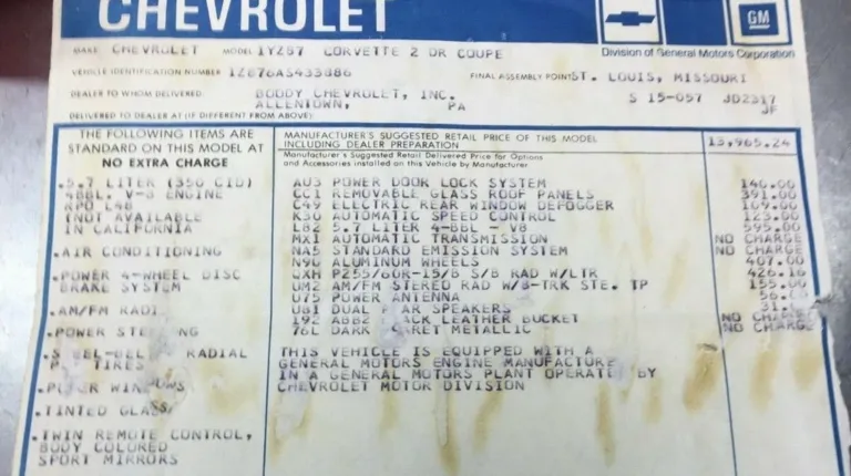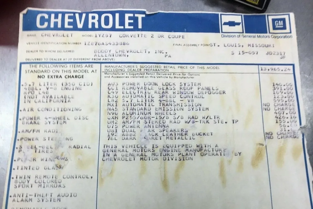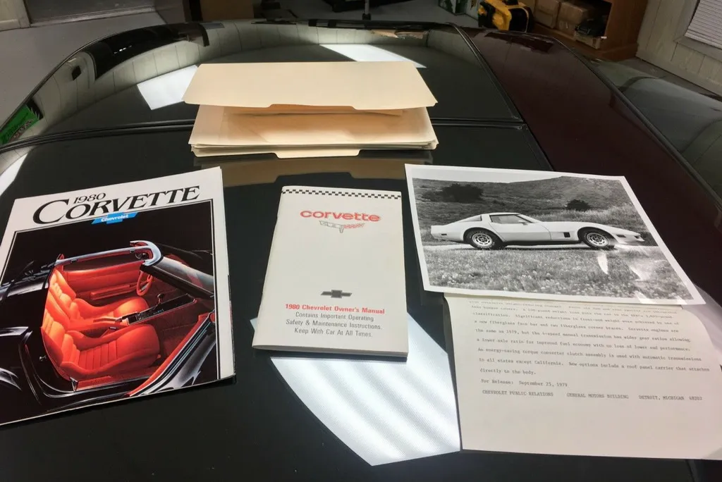 Продавец говорит, что автомобиль полностью оригинален, за исключением аккумулятора. Есть даже оригинальная наклейка на окне, руководство пользователя, пресс-кит General Motors и вся сопроводительная документация. Продавец утверждает, что классический американский спорткар проезжал каждый год несколько миль, чтобы сохранить свою форму.