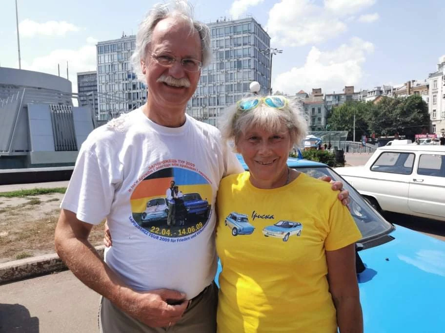 Владельцы машины – семейная пара Ирина Денис и Бернд Гартманн из города Ханенбах (земля Рейнланд-Пфальц) познакомились во время ралли по Украине еще в 2007 году, а в 2009-м отправились в свадебное путешествие – автопробег «Запорожец-Тур 2009 на суше и на море во имя дружбы и согласия между странами и народами».