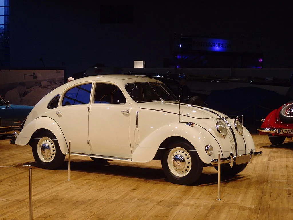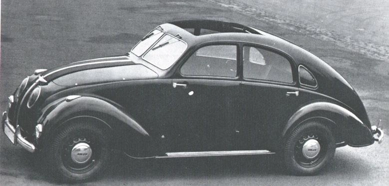 В профиль каплеобразный силуэт модели напоминал дирижабль. Внимание привлекает сильно наклонное лобовое стекло. Передней частью машина чем-то схожа с Chrysler Airflow. Из интересных дизайнерских решений отметим большой сдвижной люк в крыше, из-за чего заднее окно расположено довольно низко. В 1938 году машина получила дополнительные фары – внизу передних крыльев.