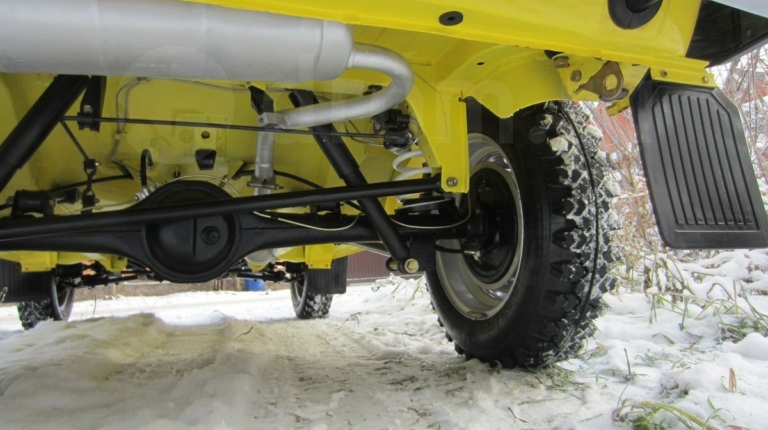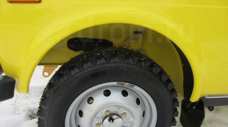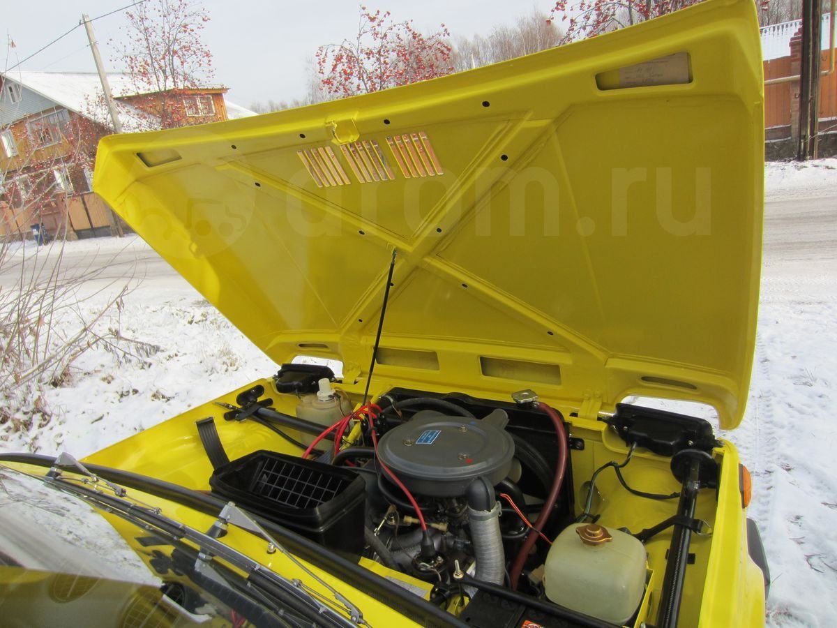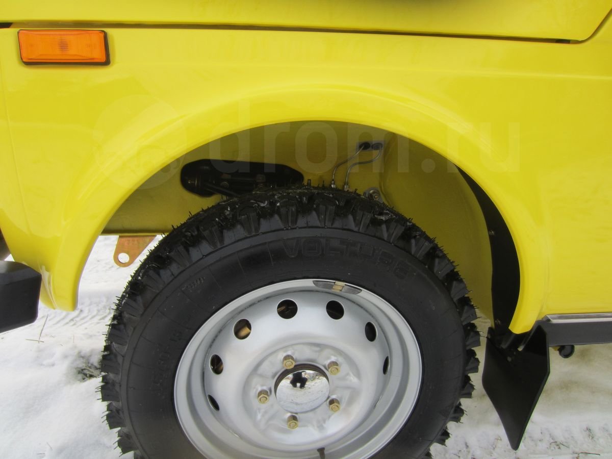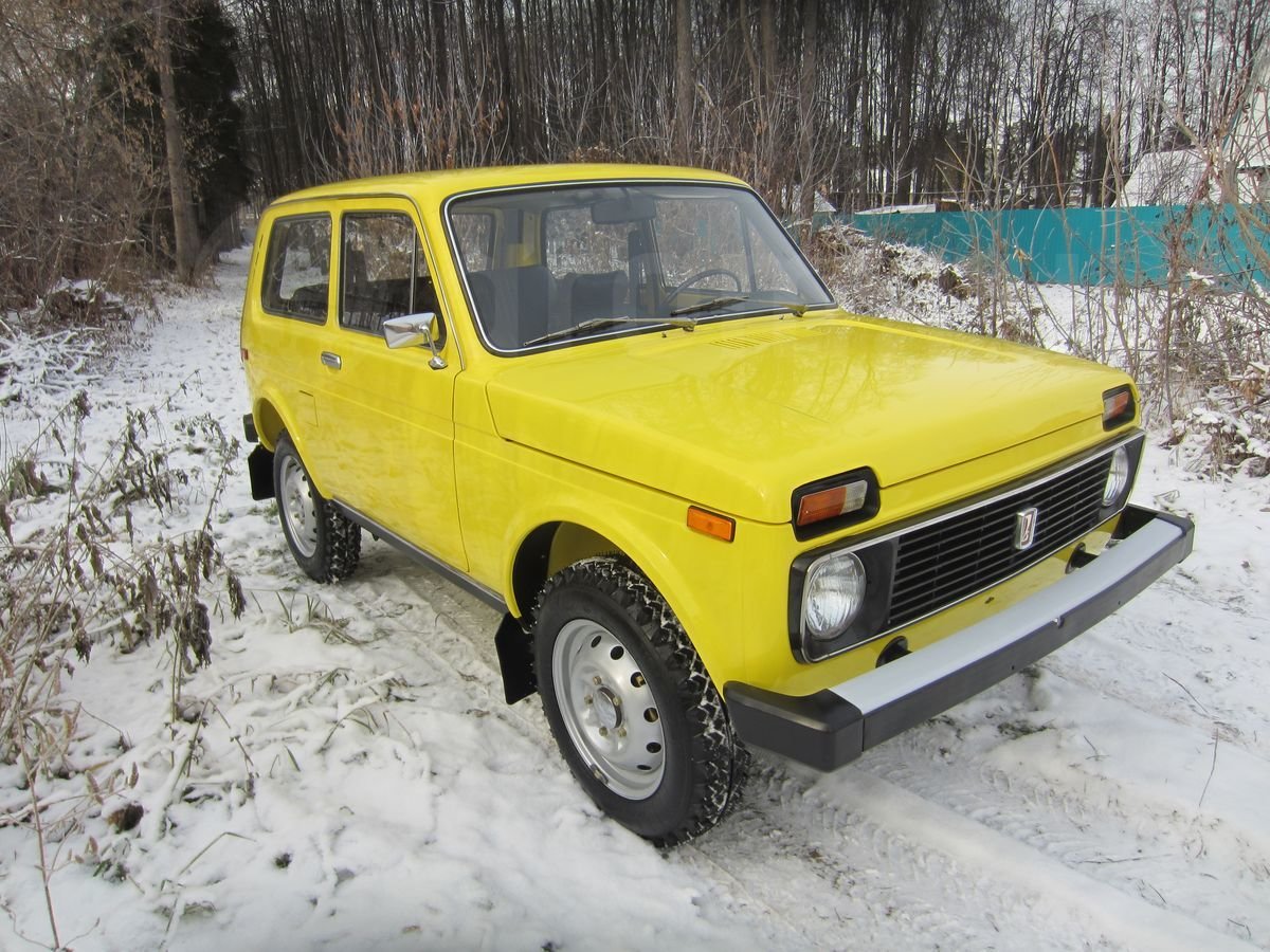 Данный внедорожник сохранил все атрибуты, присущие Нивы первых годов выпуска. У него серебряный кант радиаторной решетки, прямоугольные красные катафоты по бокам сзади, хромированные корпуса зеркал, молдинги на порогах и др. Окрашена машина в ярко-желтый цвет.