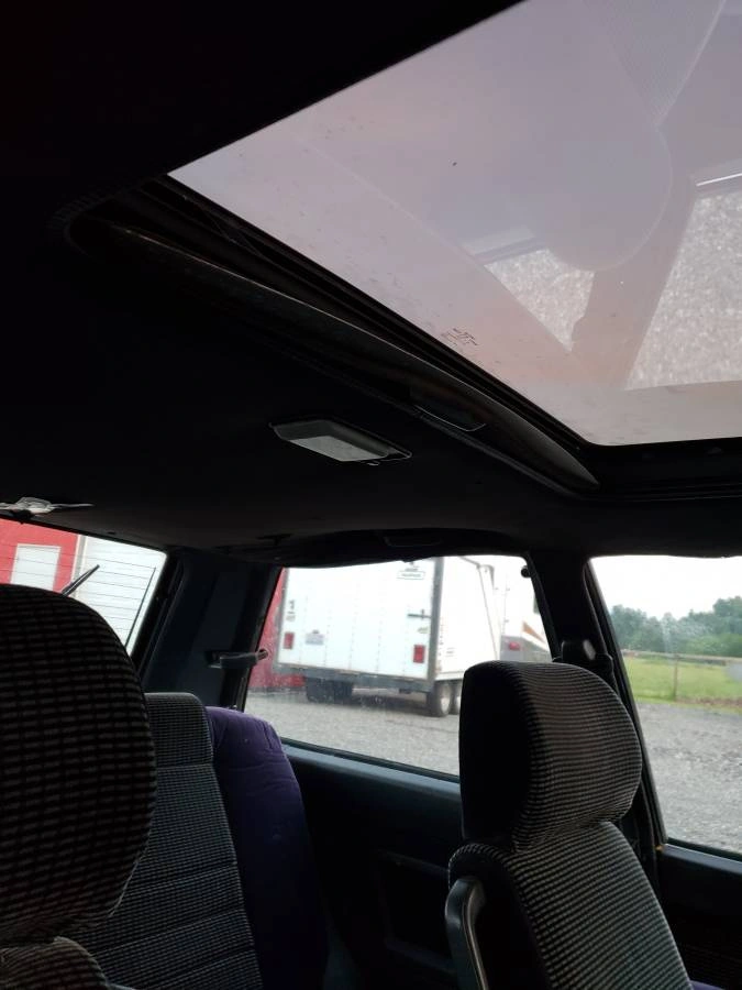 Лобовое стекло явно требует замены, а вот люк в крыше вроде находится в хорошем состоянии. Также неплохо на свой возраст выглядит и салон с оригинальной велюровой отделкой, особенно учитывая пробег в 470 000 км.