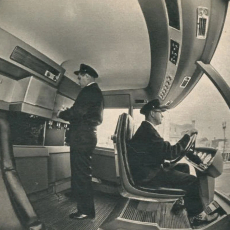 Интерьер кабины с внутренней шириной 2,13 м и высотой 1,82 м был не менее футуристическим. Лобовое стекло простиралось почти до пола, который был совершенно ровный. Это обеспечивало прекрасную обзорность и свободу перемещения. Кресло напарника трансформировалось в удобную кровать. Оптимальный микроклимат обеспечивали термостатические обогреватель и кондиционер. Помимо холодильника и микроволновки внутри был подвод холодной и горячей воды, умывальник и туалет. Кроме того, с места напарника можно было посмотреть и телевизор.