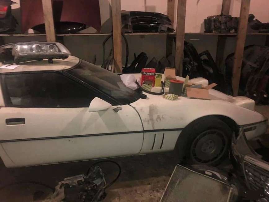 В заброшенном гараже нашли купе Chevrolet Corvette 1988 года. Судя по состоянию и слою пыли, американский спорткар простоял там не один год.