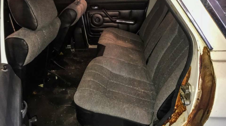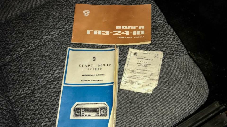 Седан превосходно сохранился, остались родные инструменты и запаска. Мало того, в авто лежат руководство по эксплуатации и тестовая аудиокассета для магнитолы.