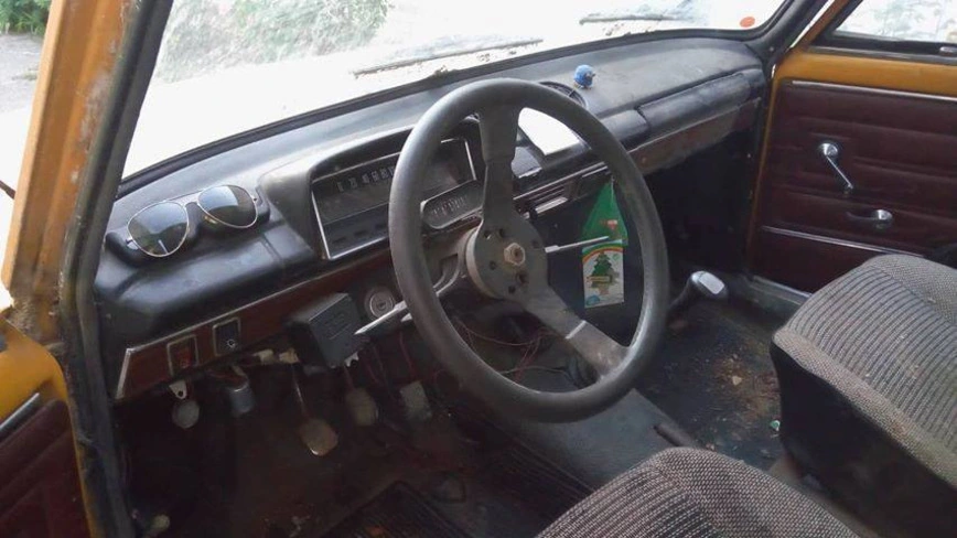 Что же касается самого автомобиля, то он сохранился довольно неплохо, хотя, конечно, ржавчина изрядно поела заднее левое крыло и пороги. Хорошо выглядит и салон, вот только спортивный двухспициевый руль здесь явно неродной.