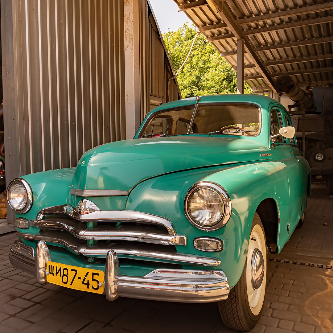 Уже сегодня здесь стоят более сотни интересных автомобилей. Как видно по фотографиям, это большое собрание легковых ГАЗов, в том числе «Победы» и «Волги». Отличная подборка «Москвичей», в том числе грузовых фургонов. Понятное дело, есть и спецтехника – пожарная автоцистерна на шасси ГАЗ-51.