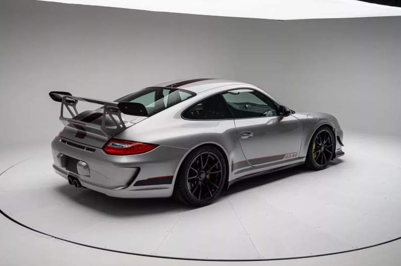 Согласно листинга, этот Porsche 911 GT3 RS 2011 года выпуска имеет порядковый номер 318 из 600, которые были построены. Но он окрашен не в белый цвет, как большинство экземпляров, а получил отделку Paint-to-Sample. Таких было выпущено всего 39 единиц. Хотя GT Silver не является самым ярким цветом из палитры PTS, но выглядит спорткар превосходно.