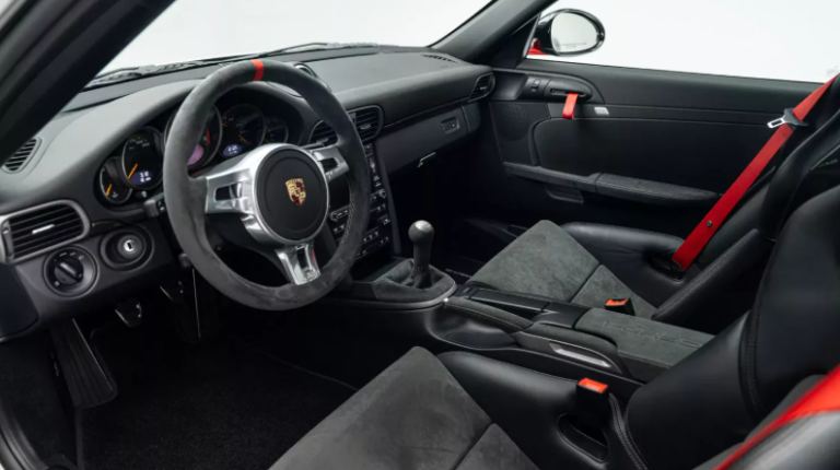 Салон спорткара отделан черной кожей и алькантарой, которые дополняют красные ремни безопасности и аналогичного оттенка дверные ручки. Под капотом установлен 4,0-литровый шестицилиндровый двигатель, который работает в паре с шестиступенчатой механической коробкой передач. Владелец намерен выручить за этот Porsche 2,69 миллиона долларов.