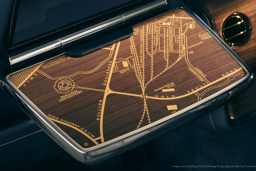 Phantom Goldfinger получил множество интересных элементов, созданных мастерами подразделения Bespoke для единственного в своем роде автомобилю в истории Rolls-Royce, каждый из которых напрямую связан с сюжетом фильма Goldfinger.