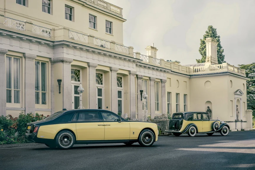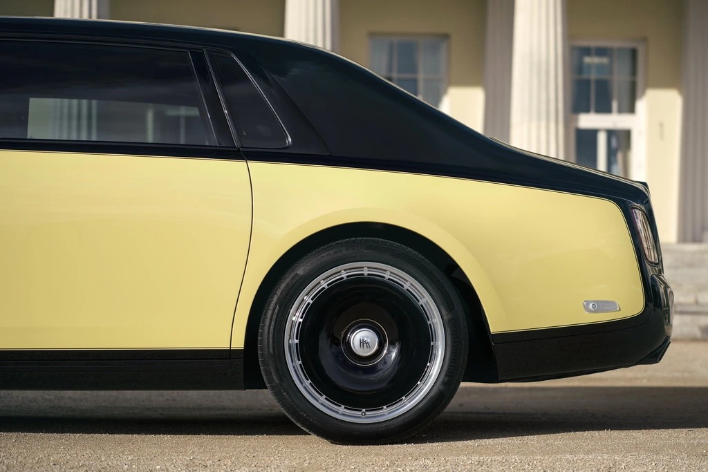 Для экстерьера специалисты по покраске Rolls-Royce точно подобрали желтый оттенок экстерьера, как у оригинального Phantom III Sedanca de Ville 1937 года, использованного в фильме. Был разработан уникальный двухцветный дизайн, в котором черные элементы изящно сочетаются с желтыми. 21-дюймовые дисковые колеса выполнены в черном цвете с серебристыми «плавающими» колпаками и напоминают дизайн колес автомобиля 1937 года из фильма.